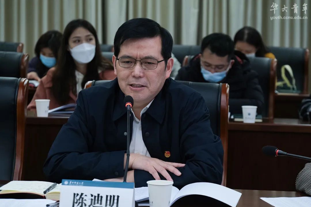 陈迪明强调,新任团干要尽快掌握今年团中央、团省委、校团委的主要工作,认真参与团干业务能力提升培训班,善于思考工作,共同学习进步。对此他提出四点希望:第一,夯实责任,为安全稳定“筑底”。要高度重视安全稳定工作,特别是意识形态工作,管好“三个阵地”,一要管好社团阵地,进行常态化自查、自纠和整改;二要管好团属新媒体,责任落实到位、工作落实到人;三要管好活动阵地,严格把关,管理到位。第二,服务大局,为创新发展“蓄力”。 各学院要以学校工作要点、校团委工作要点为指导,要抓好研究问题,抓好谋划工作,抓好落实举措,发挥好共青团服务青年为党育人的功能,以迎接和学习宣传贯彻党的二十大为主线,结合建团100周年,聚焦抓好党的事业后继有人这个根本大计,以优异成绩迎接党的二十大胜利召开,做好今年学校第十四次团代会和明年一百二十周年校庆的准备;第三,带好队伍,为团学骨干“赋能”。 要切实建设好团干队伍和学生干部队伍,基层团委书记要把学生干部们抓好抓实,培养好;第四,勤于修身,为个人素养“补钙”。青年干部要珍惜在团干岗位上的锻炼机会,在学习中提高本领,在实践中拓宽视野,同时利用好学习荟平台加强交流共同提高,为高质量开展工作打下坚实基础,为学校的改革发展添砖加瓦。