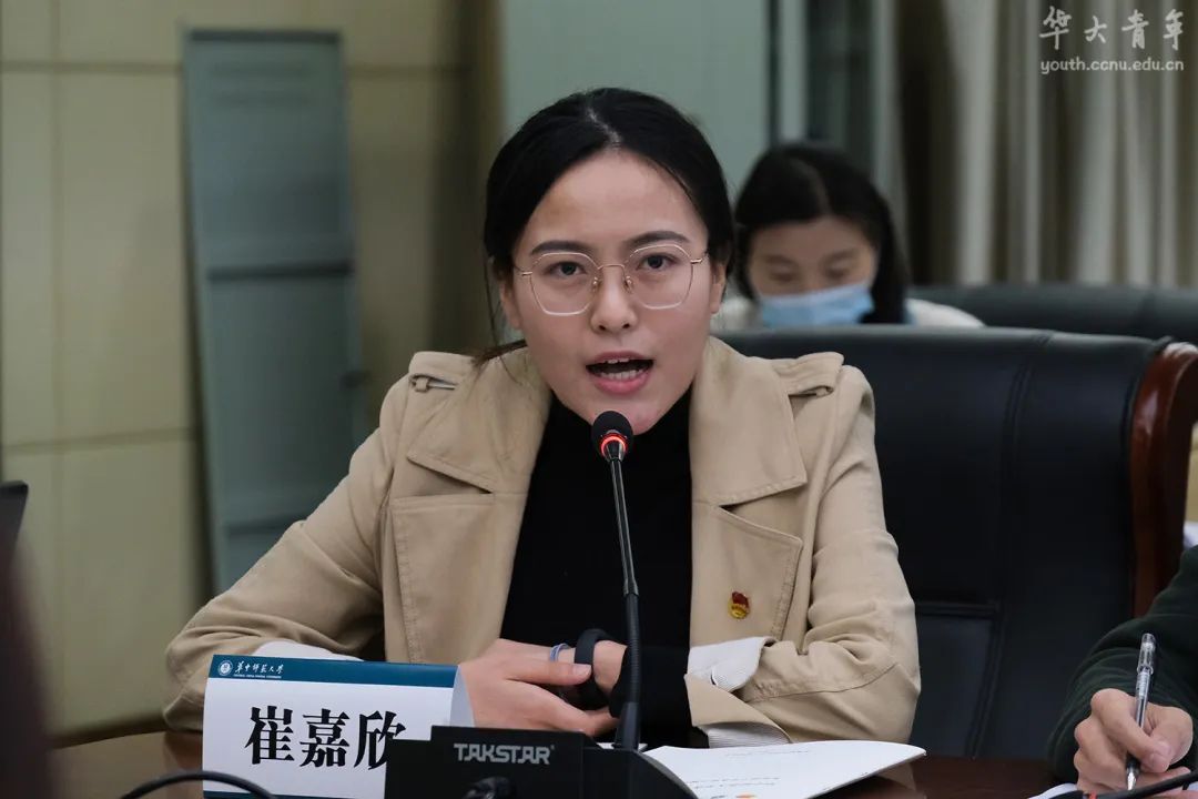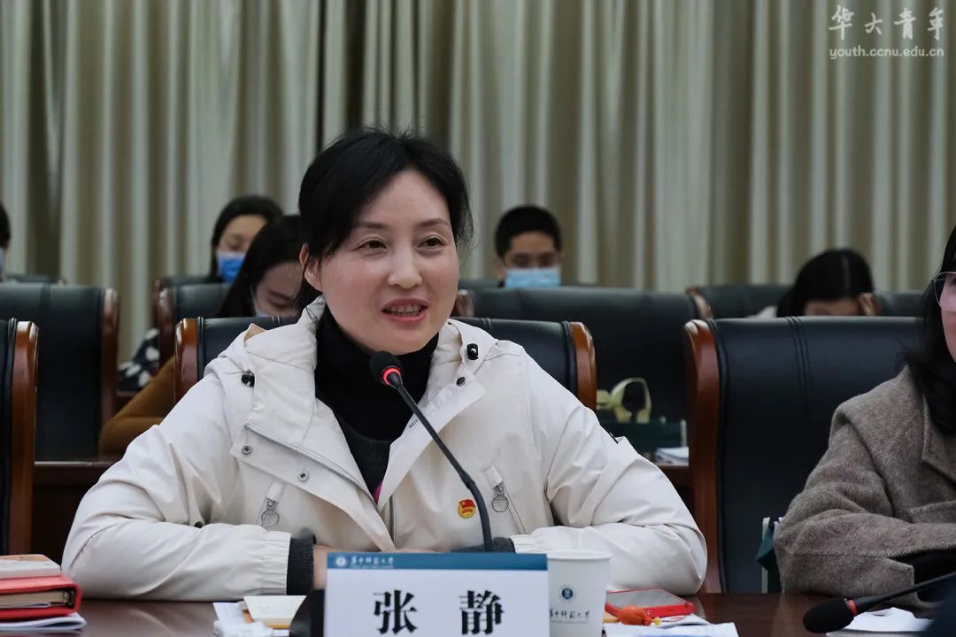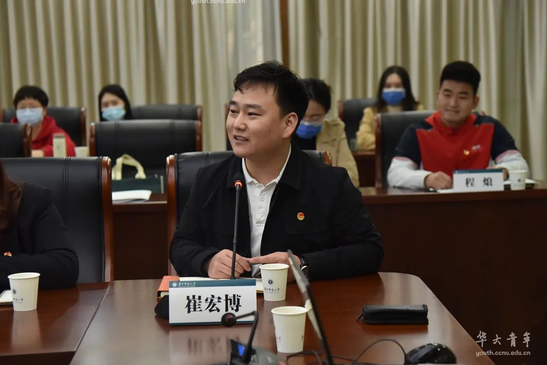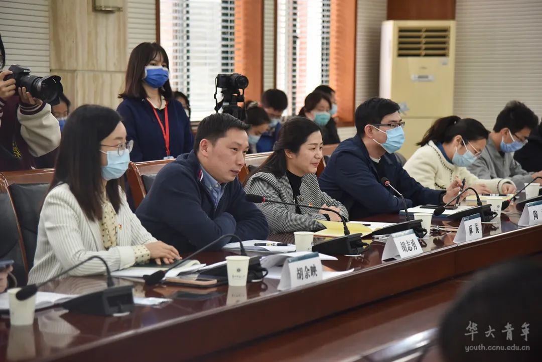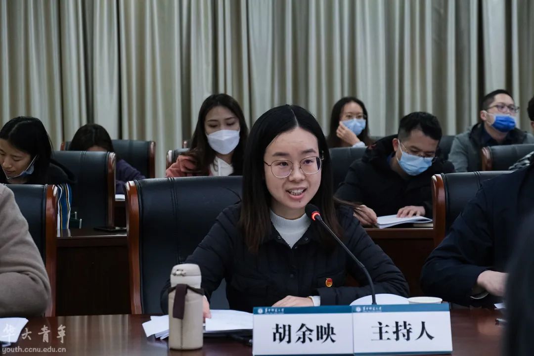 胡余映从工作思路、工作内容、共青团干部队伍调研情况三方面对共青团华中师范大学委员会2022年工作要点进行了解读。2022年,校团委将以迎接党的二十大为主线,以庆祝建团100周年为契机,以“培养有华师印记的时代新人”为工作理念,全面深化改革、全面从严治团、全面服务青年,推动我校新时期共青团工作高质量发展,并且,重点工作将聚焦思想引领、从严治团、着力育人三个方面,打造三个工程,强化思想引领,涵养“大德”之心;抓好四项建设,全面从严治团,强健“大我”之骨;创新三维育人,培育时代新人,成就“大雅”之能。