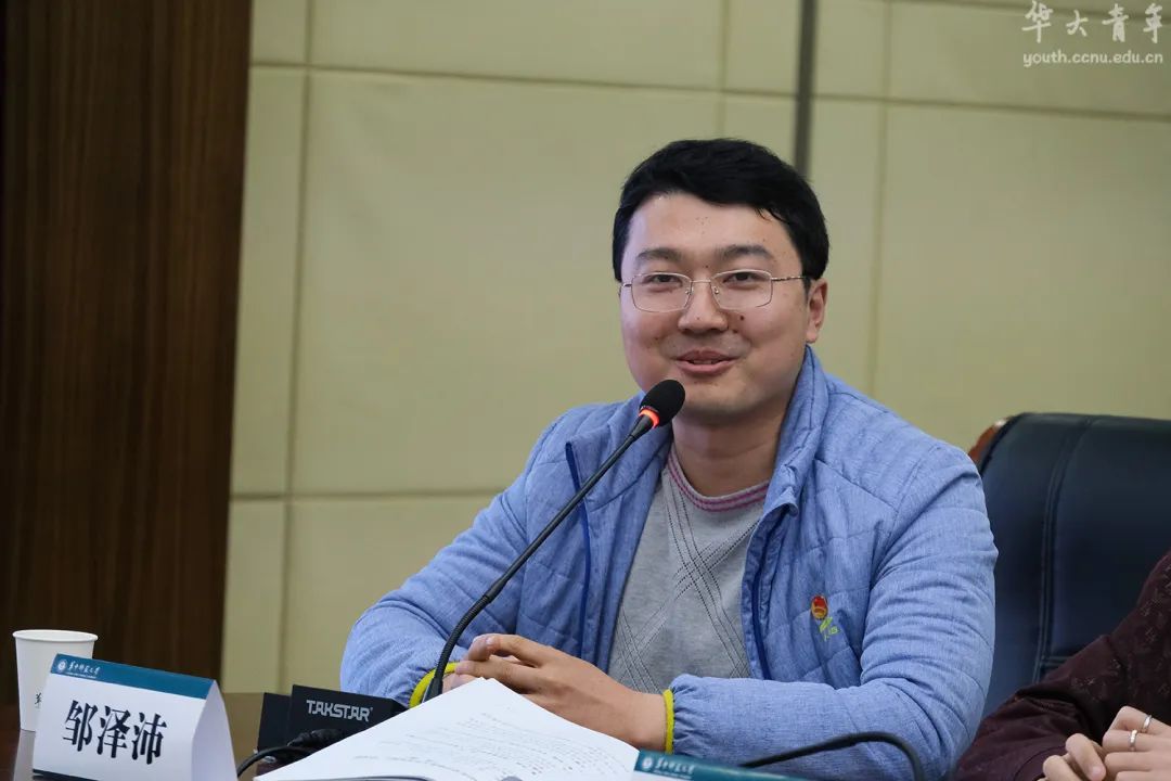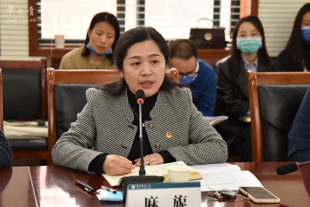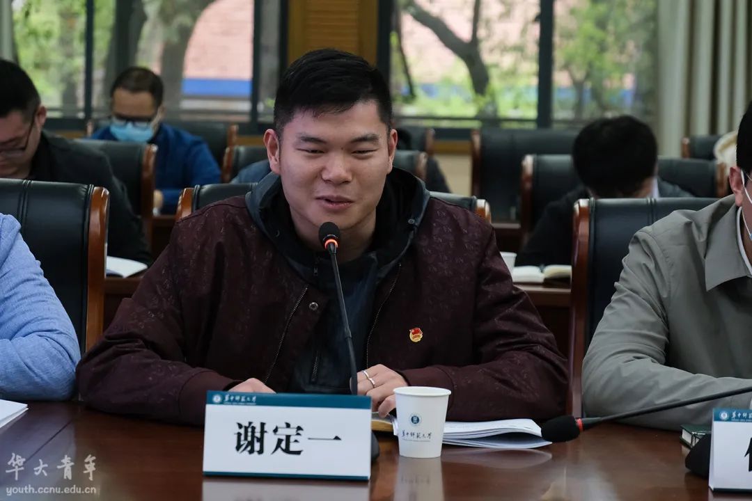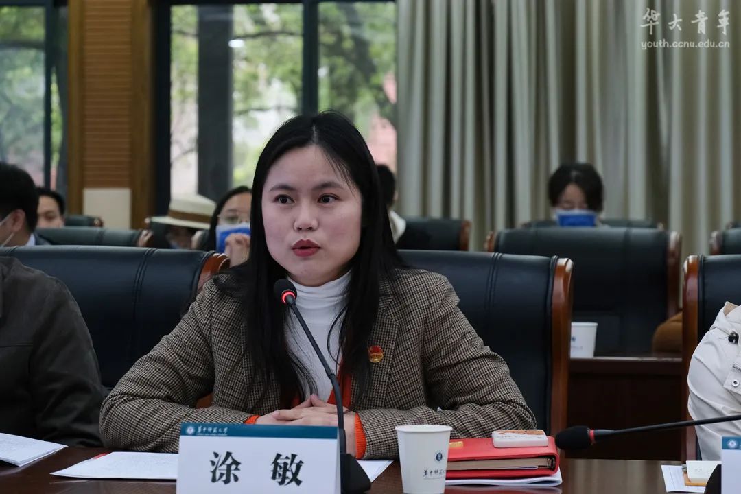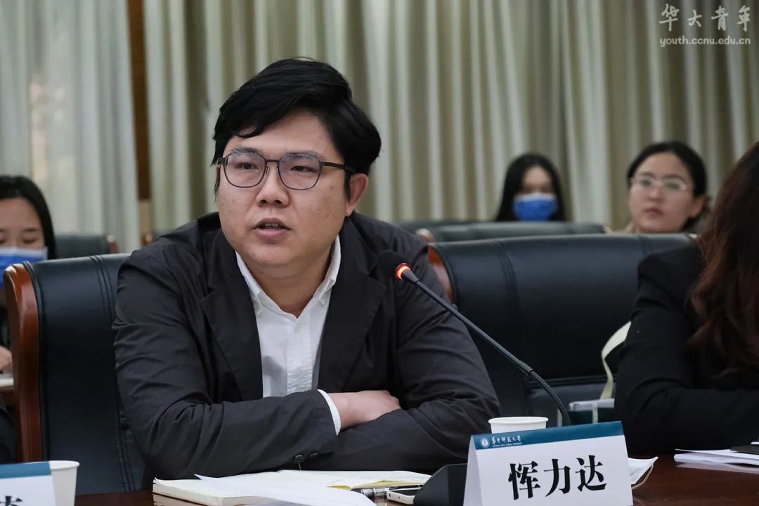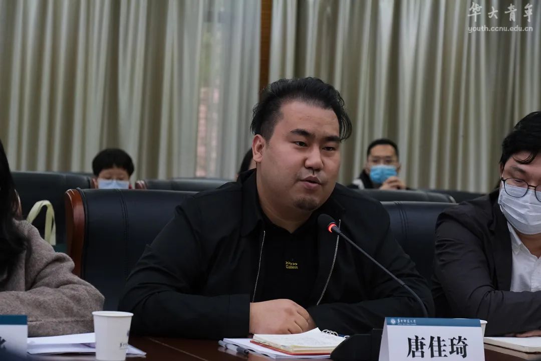 唐佳琦用三个“热”总结了9年来在生命科学学院团学工作的收获和成长——对理想的热忱、对工作的热情、对学生以及教育事业的热爱。胡尉尉也分享了自己在人工智能教育学部担任团委书记时的满满“三感”——在共青团的工作中的满足感、收获感与幸福感。谢定一分享说,“在数学与统计学学院担任团委书记是一个有忙碌但有收获的岗位,大家在团学工作中一定可以找到让自己满意的答案”。恽力达感谢华师共青团的培养,“从学生时期担任社联主席,到正式工作后成为法学院团委书记,没有华师共青团,就没有今天的我”。佐一男表示,无论是在公共管理学院团委书记一职中,还是在未来的工作中,都会继续做好本职工作,秉持青年干部的责任和担当,一如既往地支持学校的共青团事业。王倩倩向与会人员分享了在教育学院的共青团工作经验,她指出,“党旗所指就是团旗所向”,青年团干要坚定跟党走,要抓好基层团委工作,不断加强理论学习。