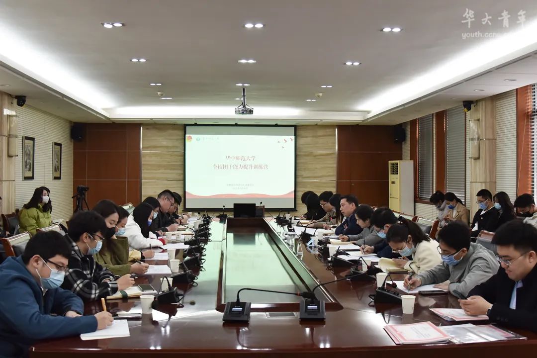 此次全校团干业务能力培训为期一天半,共安排了10场专题培训。全校团干业务能力培训班第一讲由麻旎主讲,她深入分析了学校共青团工作的现状,围绕底线要求、指标要求和亮点工作三方面进行阐述。在底线要求方面,重点强调了强化对学生社团阵地的管理、对团属宣传阵地的管理以及对学生组织的管理。关于指标要求,强调一要建好建强学院团学工作队伍,二要加强基层团组织建设,三要做好社会实践和志愿服务。随后,她讲解了学校共青团的亮点工作。麻旎强调,各位青年团干要坚持严字当头、强化自身锻造,以自我革命精神深化推进全面从严治团;要聚焦主责主业、强化责任担当,全面提升服务中心大局的贡献度;要涵养良好品格、苦练内功修为,努力成长为有筋骨善作为的团干部。下一步,校团委将从“五力”着手,加强团干队伍建设。一是激发活力,让青年团干彰显青春本色;二是减轻压力,切实解决青年团干成长中面临的问题难题;三是强化动力,加强团干队伍激励机制;四是提升能力,开展常态化、多样化的团干培训;五是注重合力,加强院内联动、院际联动和校院联动。她表示,希望在大家的共同努力下,华师共青团工作更上一层楼!