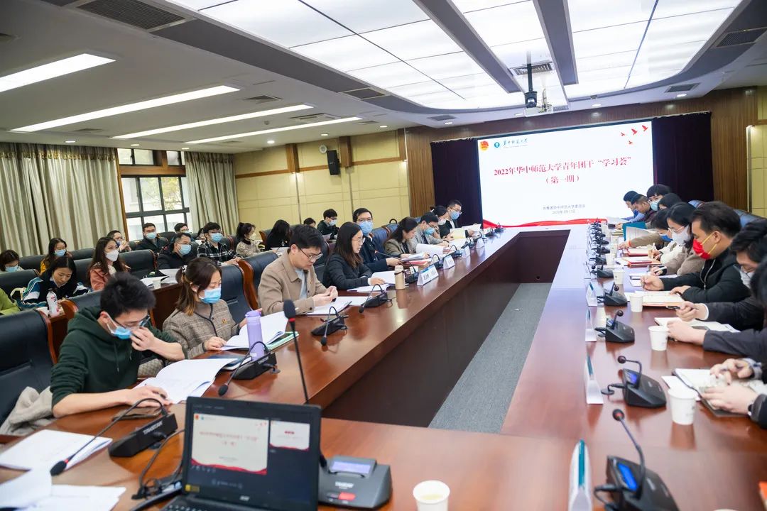 华大青年讯(文字 阎乐 摄影 汪亲然 吴优 吕柯言 谢柠桧)为深入学习领会习近平总书记关于青年工作的重要论述,落实全面从严治团、全面服务青年举措,推动我校新时期共青团工作高质量发展,进一步提升青年团干工作能力,2022年3月17日下午,2022年华中师范大学青年团干“学习荟”(第一期)暨全校团干业务能力提升培训班开班仪式在逸夫国际会议中心二楼会议室举行。校党委副书记陈迪明,校团委书记麻旎,本科生院副院长张静,校团委副书记胡余映、陶力,校团委全体工作人员,各学院团委书记、副书记,以及近期转岗团干出席会议。本次会议分为“我的青春我的团”主题团日活动和全校团干业务能力提升培训班开班仪式两个环节,分别由胡余映、陶力主持。