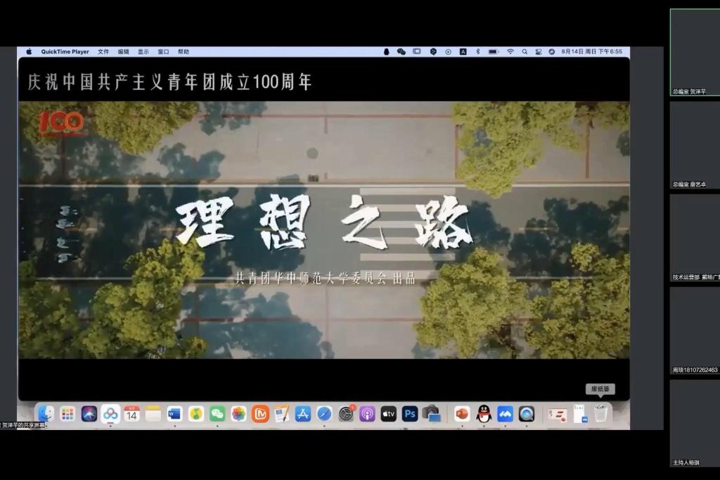 会议伊始,播放了由华中师范大学师生自主作词、作曲、拍摄的庆祝中国共产主义青年团成立100周年主题mv《理想之路》,旨在勉励全体营员在百年征程中,坚定理想、扎实奋斗,在党的号召下,走出一条与时代同向、与祖国同心的追梦之路。