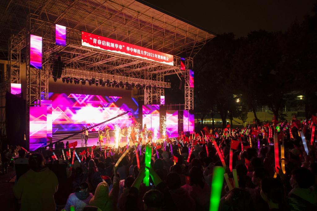 华大青年讯(文字 卢俊霖 董子怡 刘恩延 陈玮譞 摄影 党委宣传部)10月10日晚19:00,“青春启航颂华章”华中师范大学2021年迎新晚会在露天电影场拉开帷幕。晚会以宣传贯彻习近平总书记在庆祝中国共产党成立100周年大会上的重要讲话精神为基本宗旨,将“全员育人、全程育人、全方位育人”的精神贯穿始终,以“线下主会场+线上分会场”的表演模式喜迎2021级新生入学,通过呈现思想内涵深厚、育人元素丰富、形式青春活泼的精彩节目教育引导广大新生学史增信、知校爱校,营造了温馨有爱、勤学砺行、爱国奋进的校园文化氛围。华中师范大学党委副书记查道林,党委副书记、纪委书记陈厚丰,副校长彭双阶,校长助理林更茂,教育部中南地区高校第78期中层干部培训班、湖北省第85期省直机关处级干部进修班的学员代表,校内各职能部门、各培养单位的领导、老师,体育学院2020级硕士研究生、东京奥运会羽毛球女双第五名、苏迪曼杯世界羽毛球混合团体锦标赛冠军李茵晖莅临晚会。2021级本科生、研究生辅导员及3000余名新生代表参加活动。近2万人次通过线上直播的方式观看晚会。