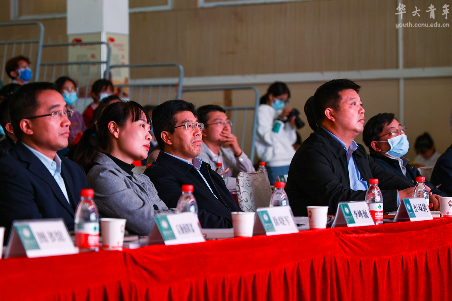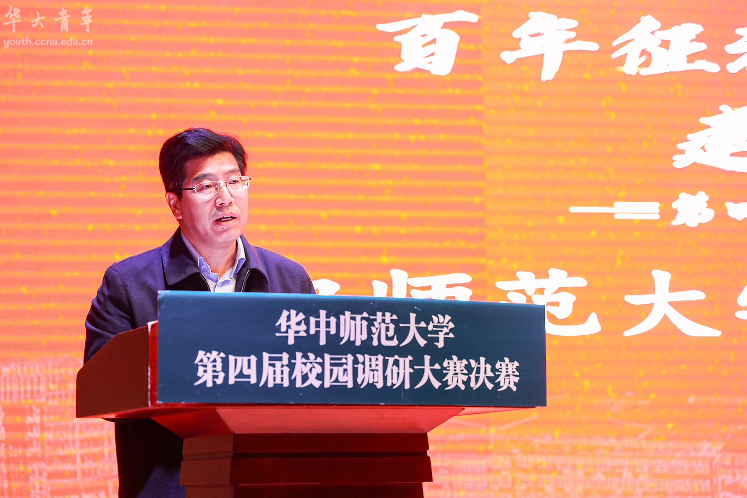 华大青年讯(通讯员 唐艺卓 李科丹)10月17日下午,“百年征程照初心·建言献策启新程”华中师范大学第四届校园调研大赛决赛于大学生活动中心五楼演播厅举行。副校长彭双阶,学校办公室、党委宣传部、本科生院(党委学生工作部)、研究生院(党委研究生工作部)、科技处、后勤保障部、保卫处、校团委、图书馆、人工智能教育学部等相关部门负责人出席活动。湖北省委政研室机关纪委书记、二级调研员张红松,湖北省委网信办网络传播与评论处副处长李峰巍,华中师范大学政研室(综改办)主任洪早清、社会学院副院长徐晓军担任评委。