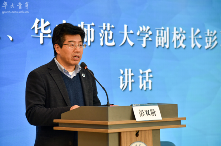 随后,彭双阶副校长发表讲话。他对我校体育事业发展取得的成就表示了充分肯定,强调在科学文化节中开展“对话冠军”等系列科普教育活动有助于广大同学树立科学精神。彭校长结合习近平总书记重要讲话精神及章开沅老校长的殷切嘱托,对全体学生提出三点期待:一是要坚守初心、奋勇争先,勇担时代使命;二是要躬亲实践、知行合一,厚植家国情怀;三是要勤学善思、争创一流,发扬冠军精神。最后,彭校长勉励全体学子争做有志气、有骨气、有底气的青年榜样,努力成为堪当民族复兴大任的时代新人。