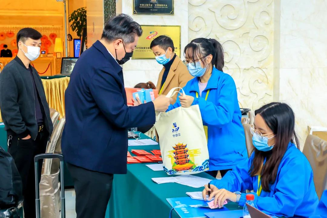 会务组的志愿者们于14日上午提前到任,协助华创会工作人员准备和整理邀请函、会议手册等相关材料。在华创会举办期间,会务组的10名同学在嘉宾入住酒店协助进行核酸检测、报道入住等工作,同时还负责了欢迎晚宴和开幕式的引导工作。