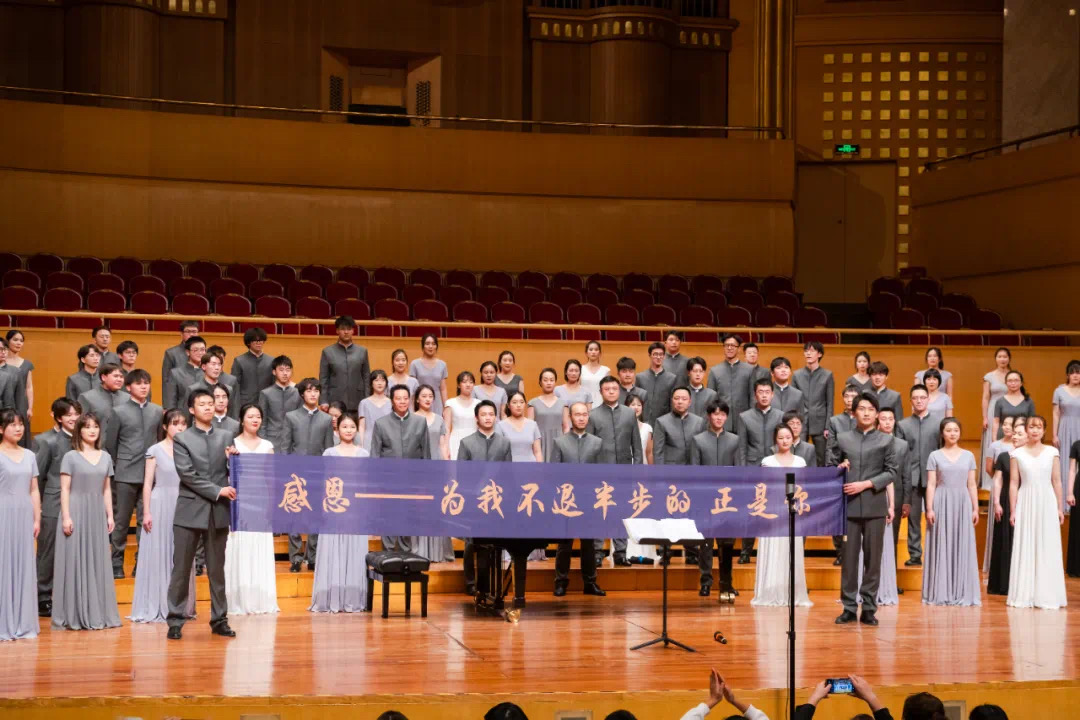 合唱团用一曲《追寻》,带领观众再次缅怀党的光辉历程,向无数为革命付出了鲜血和生命的共产党人致敬,激励大家传承红色基因,继续创造出无愧于时代、无愧于人民的崭新业绩。随后,在现场经久不息的掌声中,合唱团演绎了《春晓》《朋友》等4首返场曲目。其中,温情暖心的《汉阳门花园》仿佛让大家置身于老武汉的市井街巷,热气腾腾的热干面、桂花米酒绿豆糕、雨天玩水的武汉伢……一幕幕武汉人再熟悉不过的生活场景通过合唱团的专业演唱,在观众脑海中编织成了一幅幅鲜活的“动图”,温柔的抚慰着大家的心房,表达了合唱团对疫情期间全国支援武汉的感恩之情。音乐会的最后,100余名合唱团员一起上场,共同为大家演唱了《歌唱祖国》,表达了对祖国的无限热爱和对未来的美好祝愿,带领听众们一同展望中华民族伟大复兴的光明前景,本场音乐会也在欢呼与掌声中落下帷幕。
