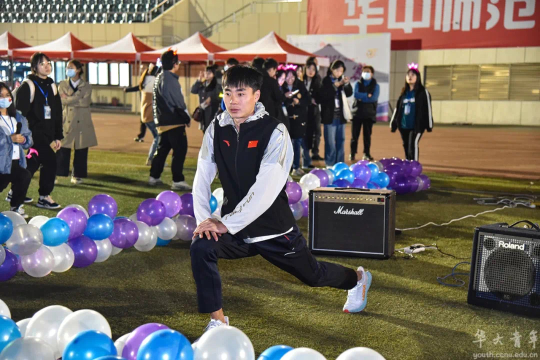 夜跑正式开始前,“湖北青年五四奖章”获得者、国际级健将运动员李茵晖、李汶妹、王祉怡,2016年里约热内卢奥运会体操女子团体季军获得者、2013年多哈世界杯高低杠金牌获得者、国际级健将运动员谭佳薪专程发来祝福视频,鼓励同学们参与活动,一起体验运动激情、收获健康快乐,回顾党史历程、赓续革命血脉,唱响属于华师少年的青春赞歌。