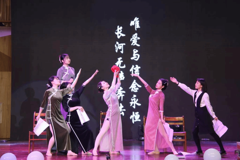 掌声如涌,欢呼如浪,热烈昂扬的“勇”过后,“千帆竞发”紧步而来。“竞”是上进的心,“发”是前冲的力,华师研究生学子以盛世之舞,献礼千帆竞发的时代、献礼党的百年华诞。王嘉舟、冯丽以翩跹的身影、娇柔的舞步献上一支《清平乐》,再现大唐华韵,弘扬传统舞蹈,致敬每个时代的舞者;《您的90,我的90》嗟嗟回望来时路,长江和黄河唱着英雄的赞歌,纪念碑展示出英雄的伟岸,90后的我们走进90岁的他们,薛晓晗等人的演绎彰显百年传承;黄思淇、阳文婷的舞蹈《秦淮叹》奏一乐衣袂轻扬,叹一声步履微点,烟笼寒水月笼沙的秦淮河畔也有侠义血性和大义凛然;李碧雯等人带来《永不消逝的电波》,展示了没有硝烟的战场上,在无声的电波中,为民族解放事业而壮丽牺牲、可歌可泣的烈士先辈们那永存的爱与信念;马克思主义学院用话剧《你好,恽代英》缅怀先烈致敬先烈,在拼搏精神中前进,在奉献精神中闪光,丹心同轨青年竞发。