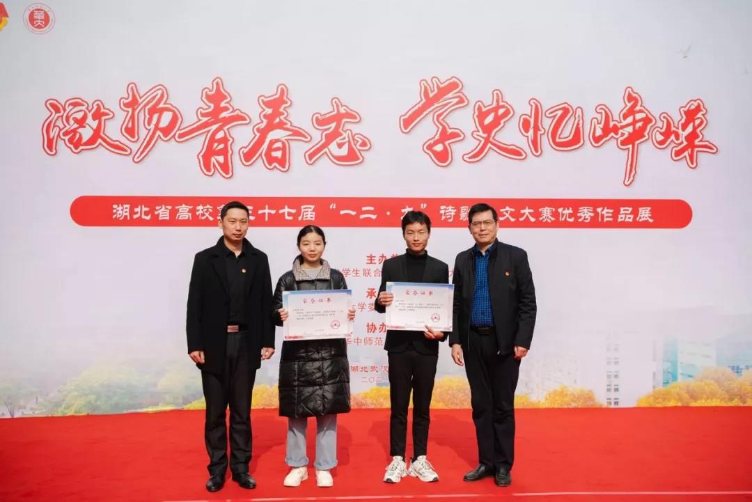 随后,湖北省学生联合会驻会执行主席毕晨宣读了《湖北省高校第三十七届“一二·九”诗歌散文大赛获奖名单》,与会领导依次上台为获奖代表颁奖,激励当代青年学子唱响时代的主旋律。