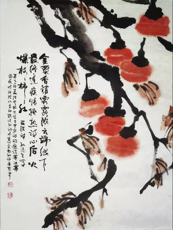 第七届“聂绀弩杯”大学生中华诗词邀请赛决赛因疫情防控从季秋推迟到初冬举行,余忝列评委有寄:金粟香销霜露浓,云端线下最终逢。疫情捂熟诗心后,火爆枝枝柿柿红。