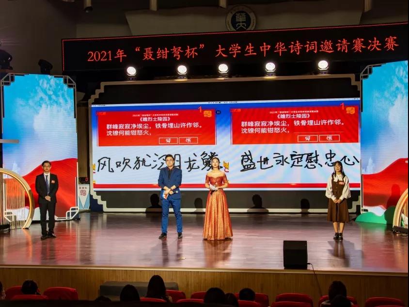 不忘初心,诗词筑梦,在朗朗诗声歌韵中,2021年 “聂绀弩杯”大学生中华诗词邀请赛圆满结束。书生意气,挥斥方遒,选手们在比赛中展现了深厚的传统文化素养和昂扬向上的精神面貌,体现了传统文化与时代精神的对话与融合。大赛带领观众品味格律之美,感受新时代青年的胸襟和学养,注重把握时代脉搏,巩固和加强了大学生的民族认同和文化自信。