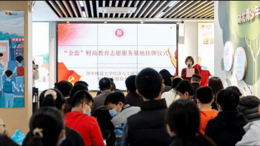 华大青年讯(记者 王凯 赵万)11月27日下午,华中师范大学经济与工商管理学院“金蕊”财商教育志愿服务基地于共青团湖北省委员会青少年服务总站长江证券投教公益展示区挂牌,并在揭牌仪式后由经济与工商管理学院志愿者为水果湖二中30余名同学进行财商教育授课。湖北证监局稽查二处一级调研员时中文,共青团湖北省委员会学校部副部长胡志勇,长江证券股份有限公司团委书记高稼祥、投资者教育基地负责人张睿、珞喻路营业部总经理赵锐,水果湖第二中学教师代表刘晓宁,华中师范大学团委书记麻旎,华中师范大学经济与工商管理学院党委副书记陈娟、金融系主任杨柳等领导嘉宾出席本次活动。