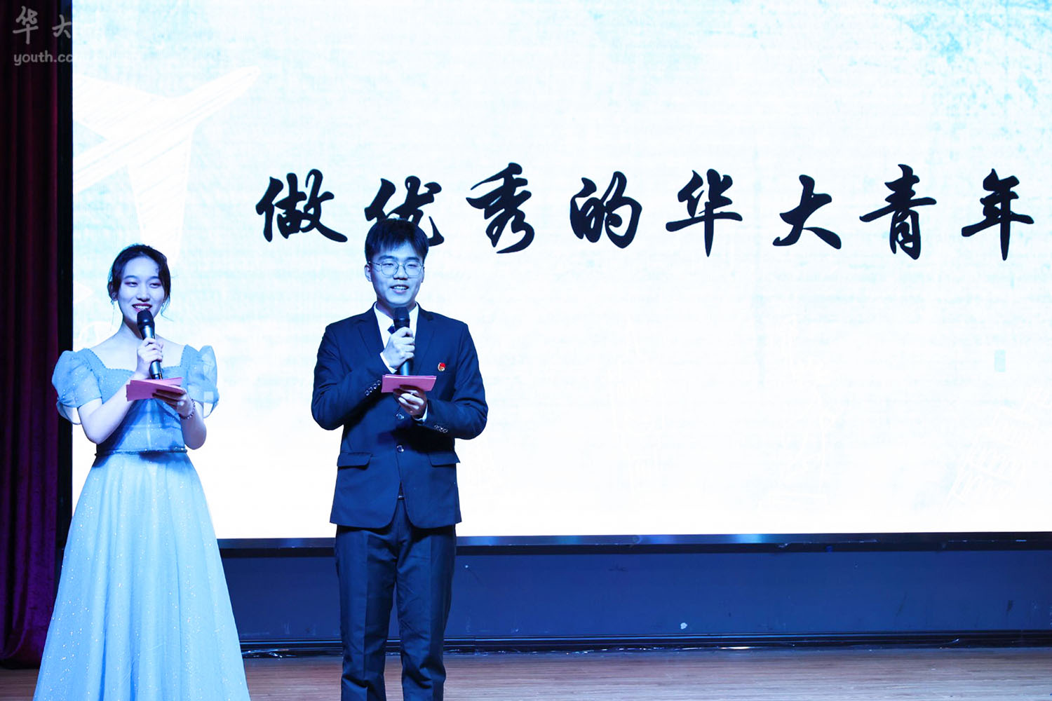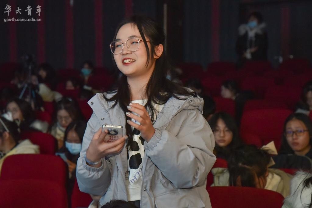 在观众互动的环节,大家一起回顾过去。现场观众主动分享自己与华大青年相遇的故事,新媒体部潘可欣分享道:“与华青相遇是在一个夏天的午后,我报名参加了夏令营,认识了对我很好的师父。正式加入华青之后感觉又不一样了,虽然经常会有很多任务,但是还是很高兴能认识大家。”同样来自新媒体的李茂森表示,很开心能够加入新媒体成为一名美编,华青给了他很多表演自己的机会,感恩遇见。