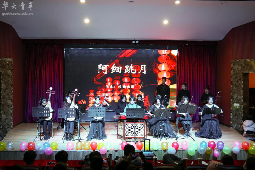 主持人宣布开场,年会的第一篇章《回顾过去》拉开帷幕。校艺术团带来的民乐合奏《阿细跳月》节奏热烈欢快、韵律强劲、气势恢宏。新闻部李昕烨的独舞《爱你》活力四射。来自新媒体部的歌曲串烧《唯一+爱人错过》,歌声与舞蹈动作搭配,带来一场视听盛宴。