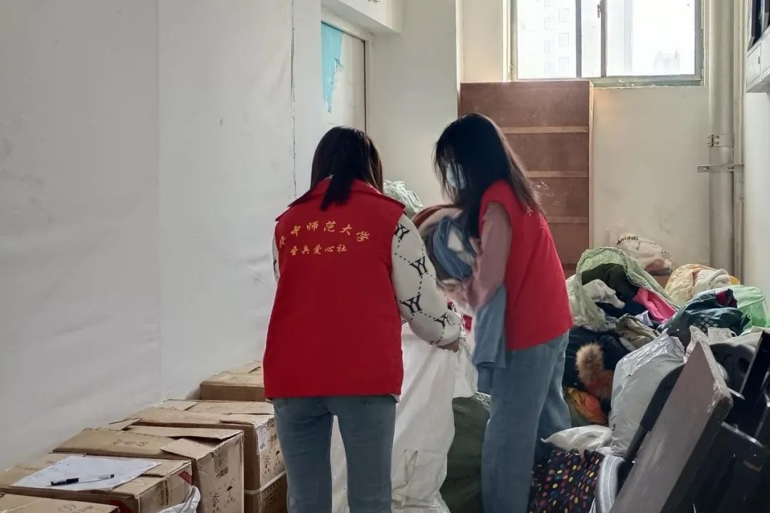 3月5日,校青年志愿者联合会与圣兵爱心社联合开展旧衣回收活动。同学们踊跃参与,捐赠出叠放整齐的旧衣物。志愿者们进行分类整理、登记储存。经初步统计,华师师生已在过去一年中捐赠重达2000余公斤旧衣物,将由圣兵爱心社全部捐赠给湖北慈善总会。“赠人玫瑰,手有余香”,一赠一收的举动,承载了捐赠者的热心与志愿者的热情,传递着华师学子坚持“济困助学、服务社会”的温情。