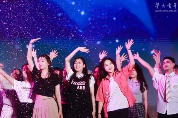 歌舞《一起向未来》中,来自体育学院的第七届世界军人运动会女子双打冠军李茵晖、2016年里约热内卢奥运会体操女子团体季军谭佳薪、2016年里约热内卢奥运会体操女子团体季军,前中国女子体操队队长商春松作为优秀校友领唱,聚焦华师“三全育人”“五育并举”优异成果。来自俄罗斯、土库曼斯坦、刚果(金)、孟加拉国等国家与地区的留学生热情演唱,将“爱在华师”的呼唤传向全世界。