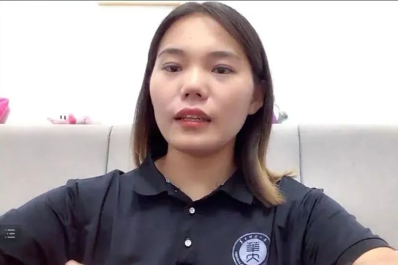 “筑梦体育人”实践队代表程雪述说了自己参与此次云支教的初心,并表示将秉承着华师精神,以专业的知识、无私的态度完成此次服务。