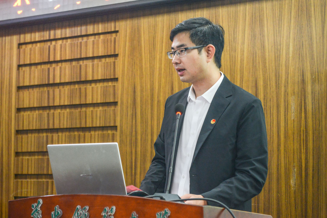 奏唱国歌后,大会正式开始。首先,陶力进行致辞。他先向华中师范大学第十次青年志愿者代表大会的召开表示热烈的祝贺,并向全校青年志愿者致以亲切的问候。接着,他总结并肯定过去一年里华大青志联在各方面取得的进步,感谢全校青年志愿者积极投身志愿服务的行动。最后,他向全体学生骨干和青年志愿者提出希望:在坚定理想信念,不忘奉献初心的基础上,既要坚守奋斗精神、保持踏实作风,又要坚持开拓创新,勇立时代潮头。