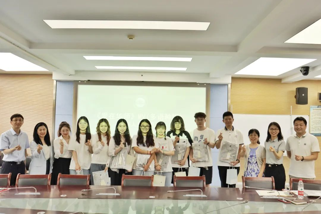 为及时总结经验,肯定师生努力成果,6月15日,外国语学院在3201会议室举办了“《爱在华师》(多语种版)主创人员交流会”。学院党委书记麻旎,党委副书记杨灵珍,法语系系主任杨芬,俄语系副系主任潘曙光,视频指导老师杨硕与主创及参演同学相聚一堂,共同交流,总结经验。会议中参与师生分享了此次作品制作的感悟。院长罗良功于线上连线交流会现场,对同学们的忘我付出与喜人成果表示感谢与祝贺。交流会气氛活跃,与会领导老师向毕业生赠送定制纪念品。