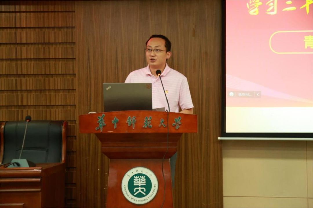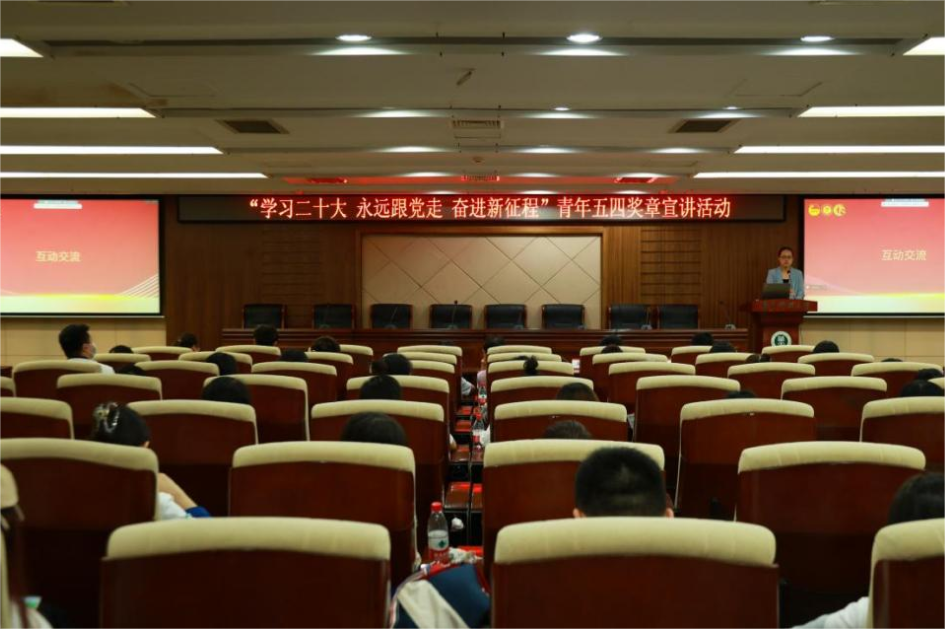 华大青年讯(文字 李从政 摄影 于金歌)为进一步发挥青年榜样的引领作用,引导学校广大团员青年树立正确的世界观、人生观和价值观,近日,由华中师范大学团委主办,中国农村研究院团委承办的“学习二十大 永远跟党走 奋进新征程”青年五四奖章宣讲活动在逸夫国际会议中心一楼报告厅成功举办。校团委书记苏晓刚、中国农村研究院党委书记徐刚以及来自全校24个教学科研单位的团委老师代表出席活动,中国农村研究院学生代表参加活动。活动由中国农村研究院党委副书记马珺主持。