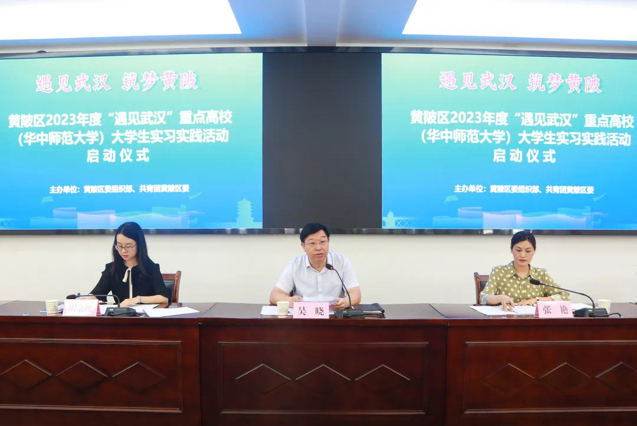 华大青年讯(文字 胡羽 摄影 各学部学院(所、中心)团委)7月10日,2023年度“遇见武汉 筑梦黄陂”华中师范大学大学生实习实践活动启动仪式在黄陂举行。黄陂区19家政务实习单位人事负责人及华中师范大学29名校级“青马班”学子参加启动仪式。