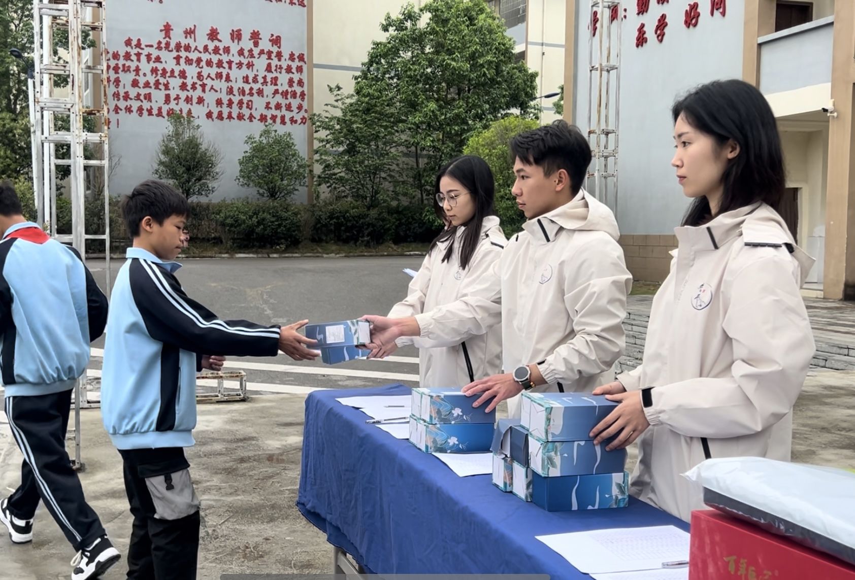 随后,紫云分队成员为130名优秀学子发放了羽绒服、水杯、吹风机等暖冬物资。这一份份穿越空间、充满爱心的礼物,无不昭示着哪怕是身处偏远山区的孩子们,也是被爱包围的一代人,相信他们也会将这份爱埋藏心底,铭记于心,在阳光下更好地成长。
