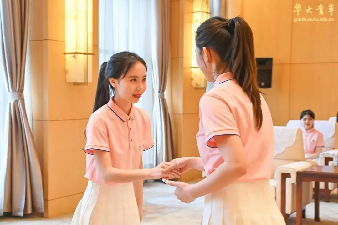 华大青年讯(文字 邱亚航 摄影 吕蔚涵 王钦 蔡涵蕊)为提升华中师范大学礼仪队队员的礼仪修养和综合素质,积累重大赛会服务经验和业务能力,进一步完善校礼仪队业务培训体系,3月31日上午,校礼仪队赴武汉东湖宾馆进行参观学习。