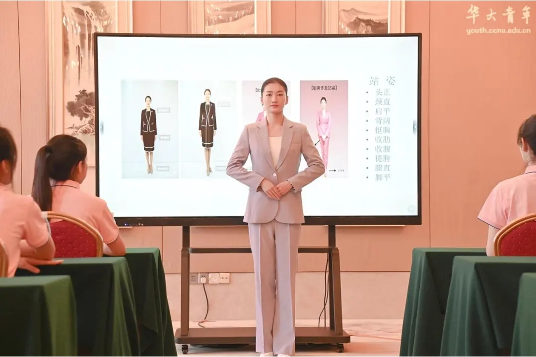 3月31日上午,校礼仪队队员们来到了环境优美的武汉东湖宾馆,武汉东湖宾馆会议部经理刘恒子分别从礼仪基础知识、仪表仪态、接待礼仪、协调能力四个方面开展礼仪素养的主题培训,并通过工作人员的现场礼仪示范推动理论知识内化,进一步深化队员对于礼仪基础知识的了解,充分助力提升队员的礼仪素养和服务水平。