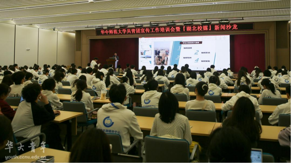 华大青年讯(文字 王安琪 周应瑛 摄影 胡一凡 吕蔚涵 兰馨)为增强华中师范大学共青团宣传工作的感召力与影响力,提升华大青年融媒体中心专业化与规范化程度,促进华大青年工作提质增效,3月22日下午,华中师范大学共青团宣传工作培训会暨“湖北校媒”新闻沙龙在新文科楼一楼报告厅举行。