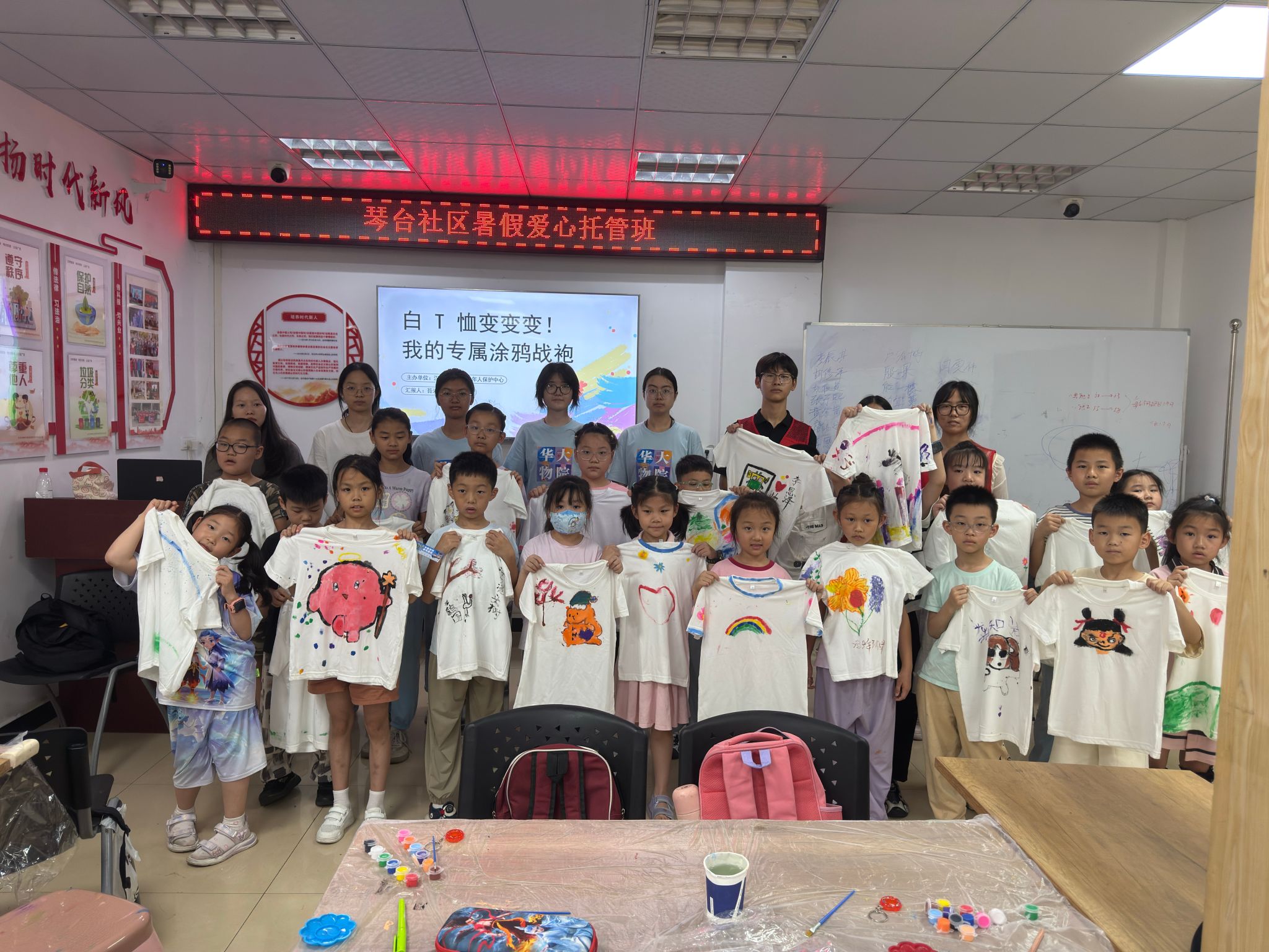 此次活动实践队队员以艺术为媒介,连接青春担当与社区关怀,在调色、绘画、交流中,传递的不仅是创作技巧,更是对未成年人成长的关注。当颜料风干,创意却永不褪色。这场白T恤上的艺术实践,是青春与童真的美好对话,更是高校社会实践服务社区、守护未成年人成长的生动缩影。