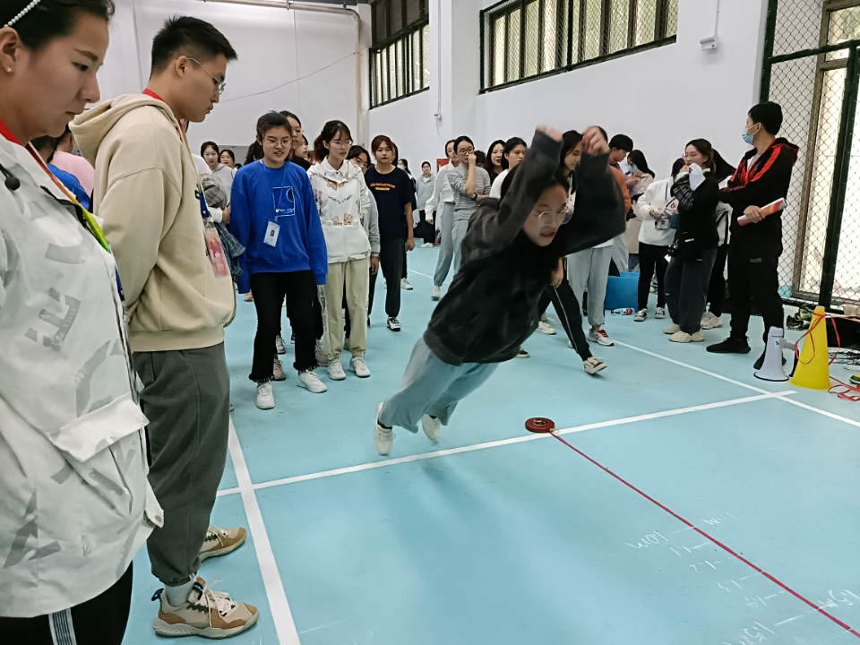 下午,女子立定跳远如期进行。30名由三个年级、四个专业组成的女子代表队代表物院参赛。预摆、起跳、腾空、落地,选手们依次上场、默契衔接。在比赛突发情况有一名选手未及时赶到时,周新颖同学积极上场替补。经过激烈的角逐,物院女子跳远位列团体第七。