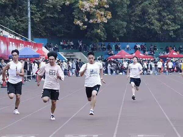 上午,学生组男子100米预决赛准时开始。董云亮、王铂辉、冯天时、劳力昊代表物院参赛。比赛前,气氛紧张,运动员们都蓄势待发。一声枪响,运动员们摆臂迅速,步伐稳健,疾驰而出。在这场比赛中,每一位运动员都敢于挑战自我,勇于为物院的荣耀拼搏。