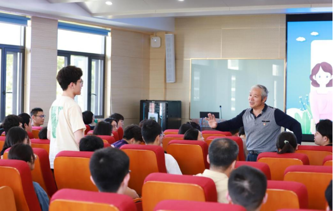 在报告中,他生动讲述了一个又一个与教育相关的故事——41 年前初踏讲台的窘迫和突破,面对调皮学生的教育策略,学生不完成作业的应对办法,在批评和鼓励之间把握尺度,如何走进学生心里……这些小故事串起了两个多小时的讲座。而其中强调最多的是“学生”——要学会读懂学生、要向学生学习、要对学生学习动力和积极性有把握等。