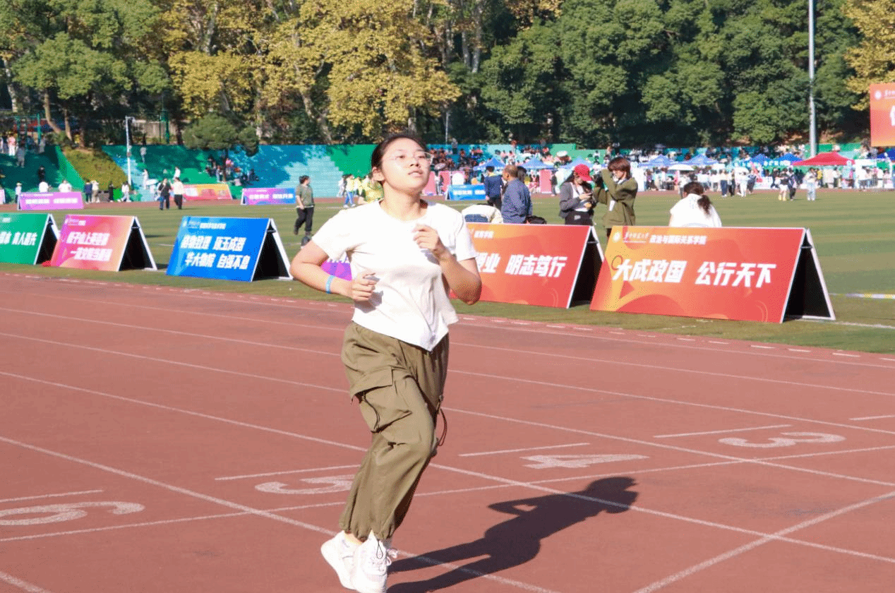 女子组400米比赛随后展开,应和着午后的暖阳,女子组运动员们在正式赛场上,蹬地、摆臂、调整节奏,一步一步奋力前进,即使暂时落后于其他人,也绝不言弃,全力冲向终点。