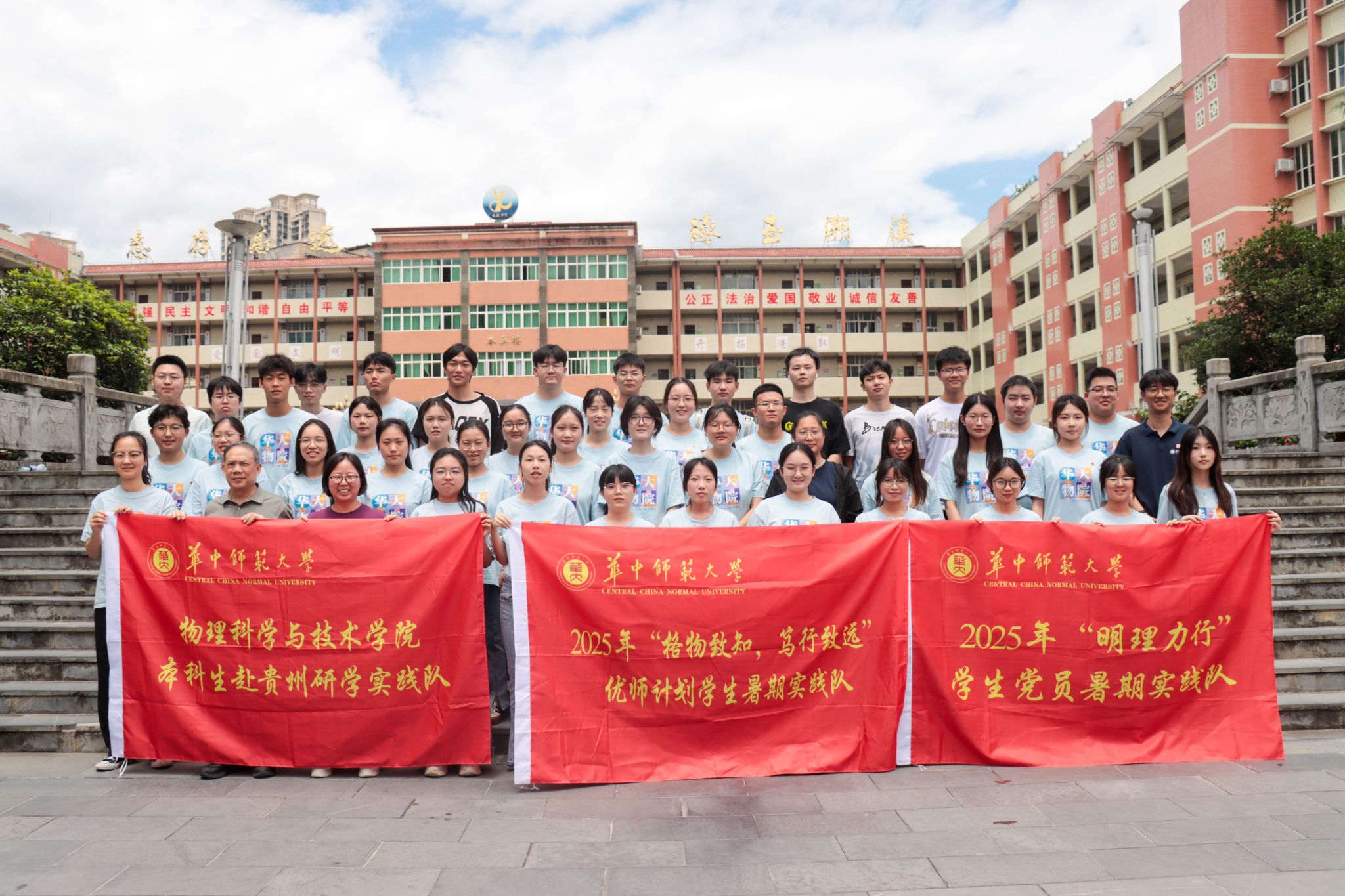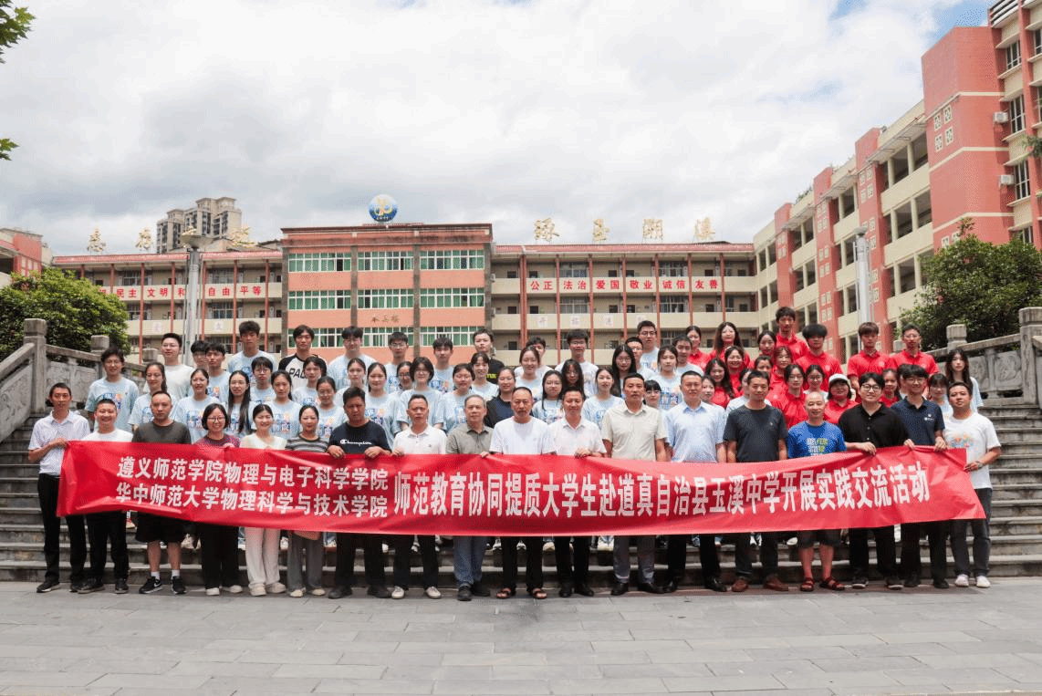 华大青年讯(通讯员 吴茜茜) 7月1日至7月3日,华中师范大学物理科学与技术学院“格物致知,笃行致远”优师计划学生暑期实践队、“明理力行”学生党员暑期实践队与学院本科生赴贵州研学实践队在遵义市道真县玉溪中学,围绕“理想信念、科普体验、学业复习”课程主题,开展了为期三天的教学实践活动。为深化师范教育协同提质,遵义师范学院物理与电子科学学院实践队同行开展教育见习及专题调研,携手走进县域基础教育一线。