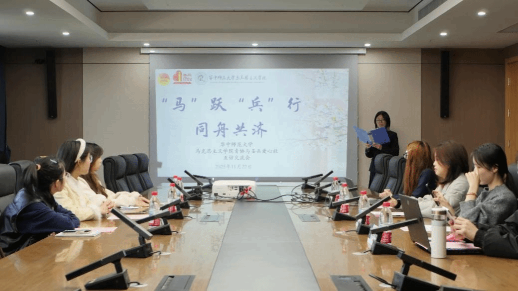 华大青年讯(通讯员 陈睿)11月22日,华中师范大学马克思主义学院(以下简称“马院”)青年志愿者协会(以下简称“青协”)与圣兵爱心社互访交流活动在文科综合楼北楼409会议室展开。马院青协成员李环主持本次活动。