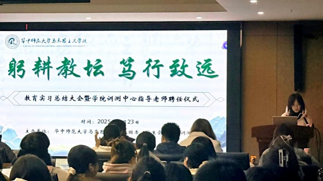 12月23日,为全面总结2025年度教育实习成果,持续提升师范生培养质量,马克思主义学院(以下简称“马院”)举行“躬耕教坛,笃行致远”师范生实习总结大会暨训测中心指导老师聘任仪式。马院副院长邵彦涛、副院长高鑫、教授王忠文、教师江伟受邀出席本次会议,师范生训测部成员陈奕盈主持本次活动。