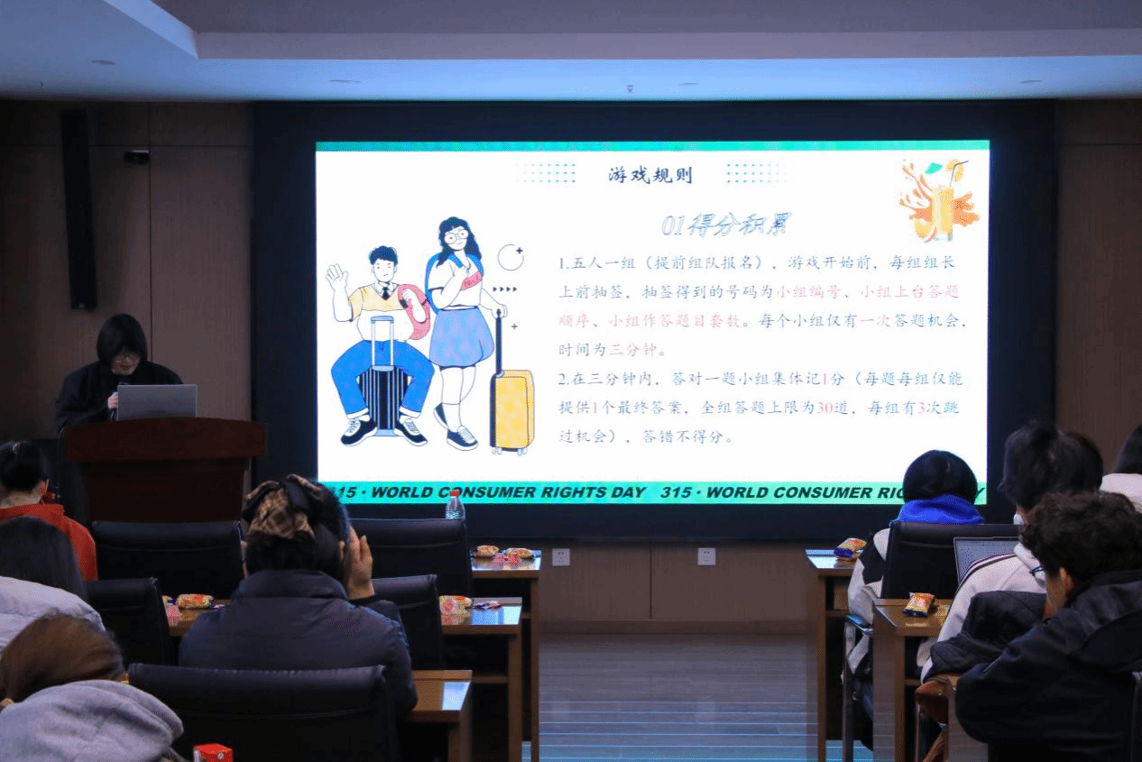 为紧扣2026年中国消费者协会“提升消费品质”消费维权年主题,立足大学生消费实际需求,本次消费维权主题游园会旨在增强学生消费维权意识,引导大家树立科学消费观念,掌握实用维权方法。本次游园会以团队竞赛形式开展,30名本科生组成6支队伍参与比拼。活动设置“我要答对题”“我要慧购物”“我要辨真伪”三大环节,内容层层递进,融知识性与趣味性于一体,让同学们在互动体验中提升消费维权素养。