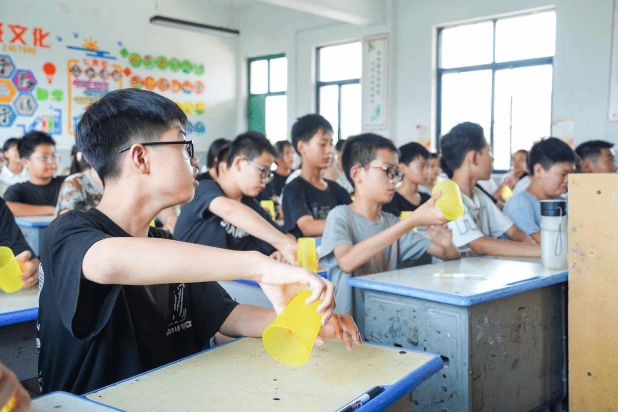 音乐课堂别开生面,队员们以生动有趣的方式带领学生感受节奏与旋律的魅力。队员杨心语为学生带来了一场别开生面的杯子舞课程,带领学生随《稻香》的节奏学习整套动作,清脆整齐的敲击声和学生脸上的成就感成为音乐课堂上最鲜明的标识。而在戏剧初探课程中,杨心语融入豫剧元素,带领学生走进戏曲文化的奇妙天地,感受中华传统文化的魅力,让文化自信的种子在学生心中生根发芽。