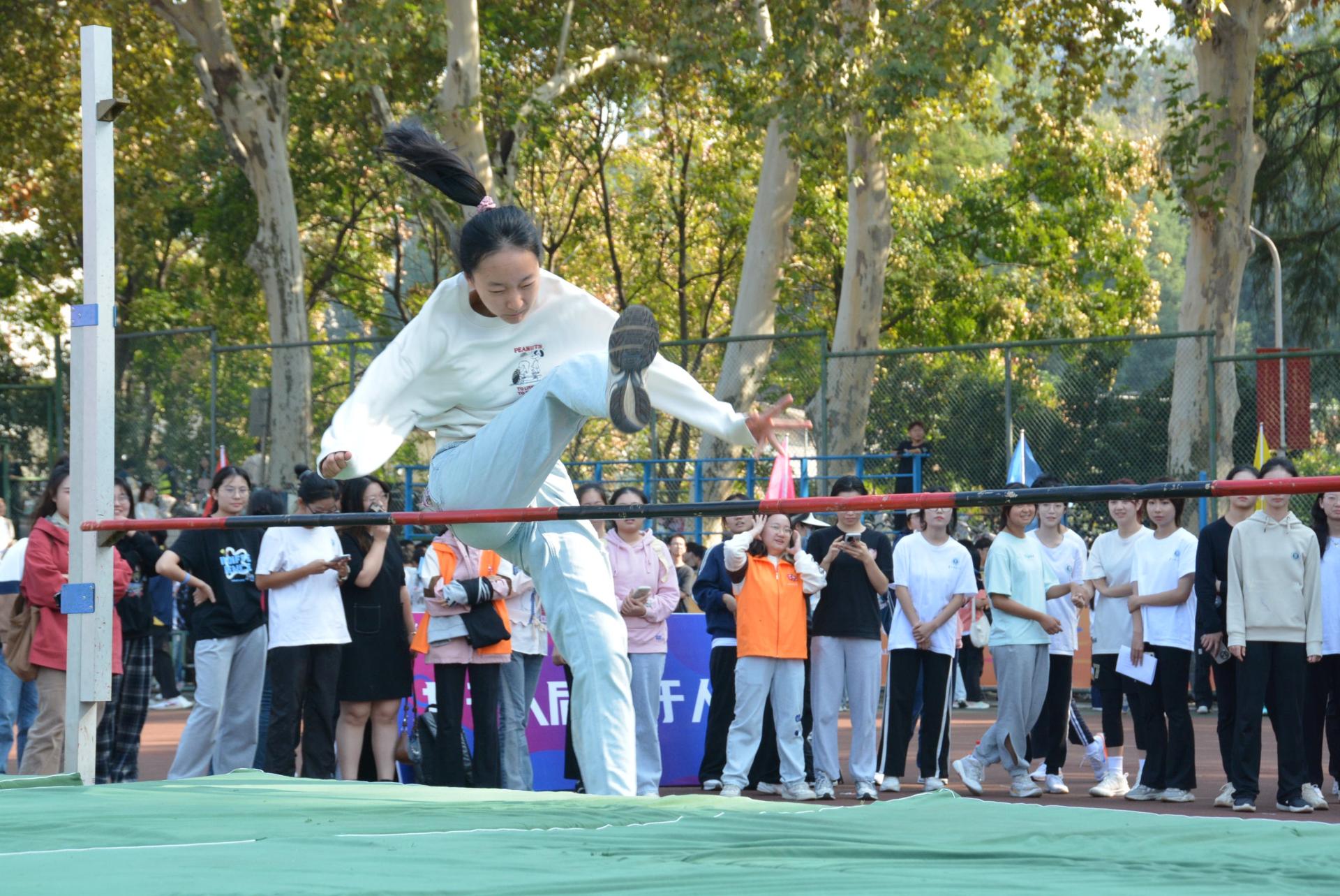 城环学院的运动员周怡宏和马惠敏参加女子跳高项目。比赛开始,两位选手屏息凝神,助跑起跳,勇敢挑战自己的身体极限,彰显了青春最美的奋斗姿态。每一次她们跃起,观众们都会热烈欢呼,这一声声的呼喊都是对运动员精彩表现的热情回应。