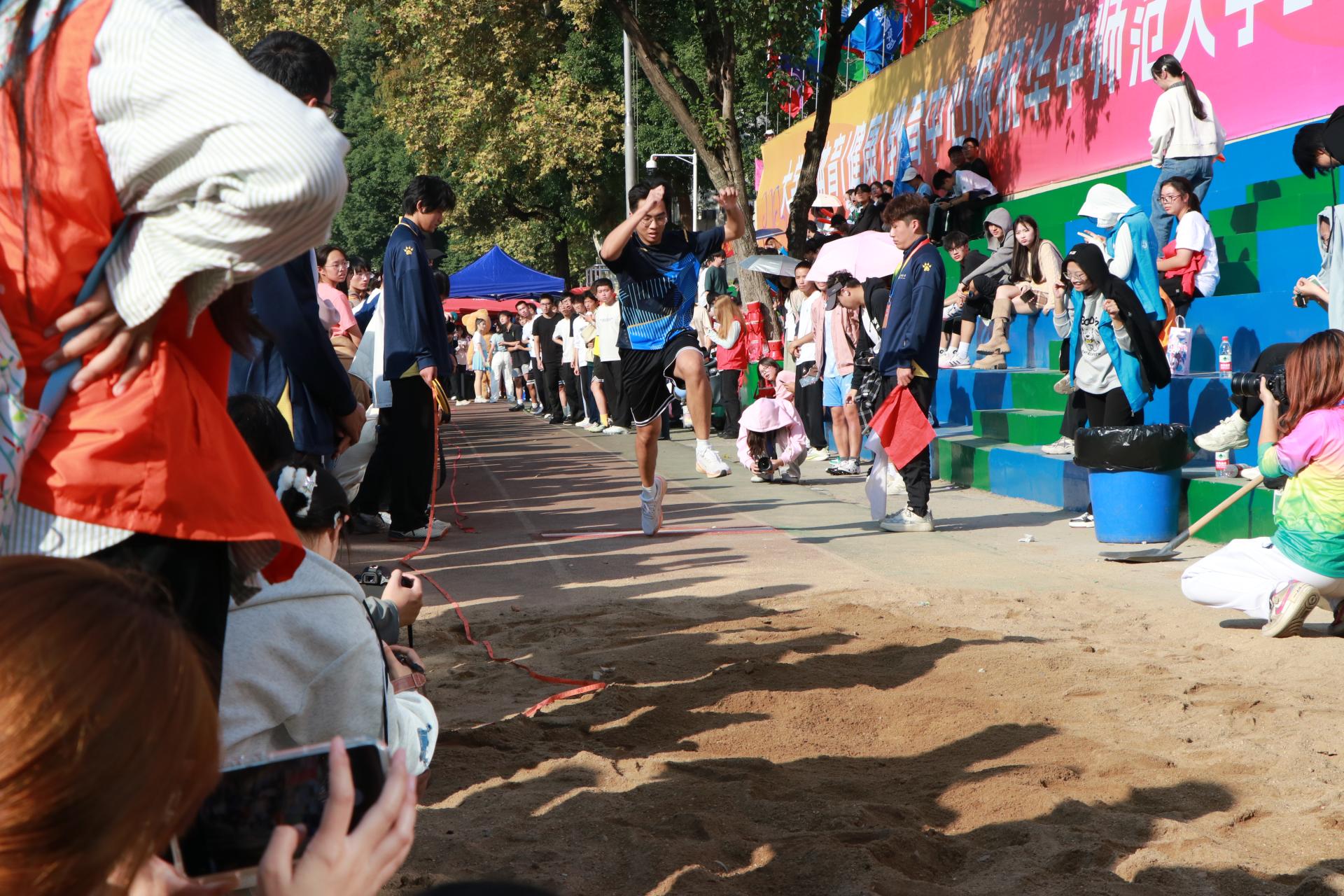 与此同时,跳远赛场上,周紫明、朱泓绪、赵宗良代表城环学院参赛。他们认真投入到热身活动中,仔细完成每一个准备动作,以确保比赛安全无误。哨声吹响,只见他们身姿矫健,快速助跑,有力摆臂,而后纵身一跃,在空中划过一道优美的弧线。平稳落地的瞬间,现场观众爆发出热烈的掌声和欢呼声。三轮激烈的角逐中,每位运动员起跳瞬间目光坚定,他们拼尽全力,高高跃起并奋力向前伸展,每一跳都力求突破自我。