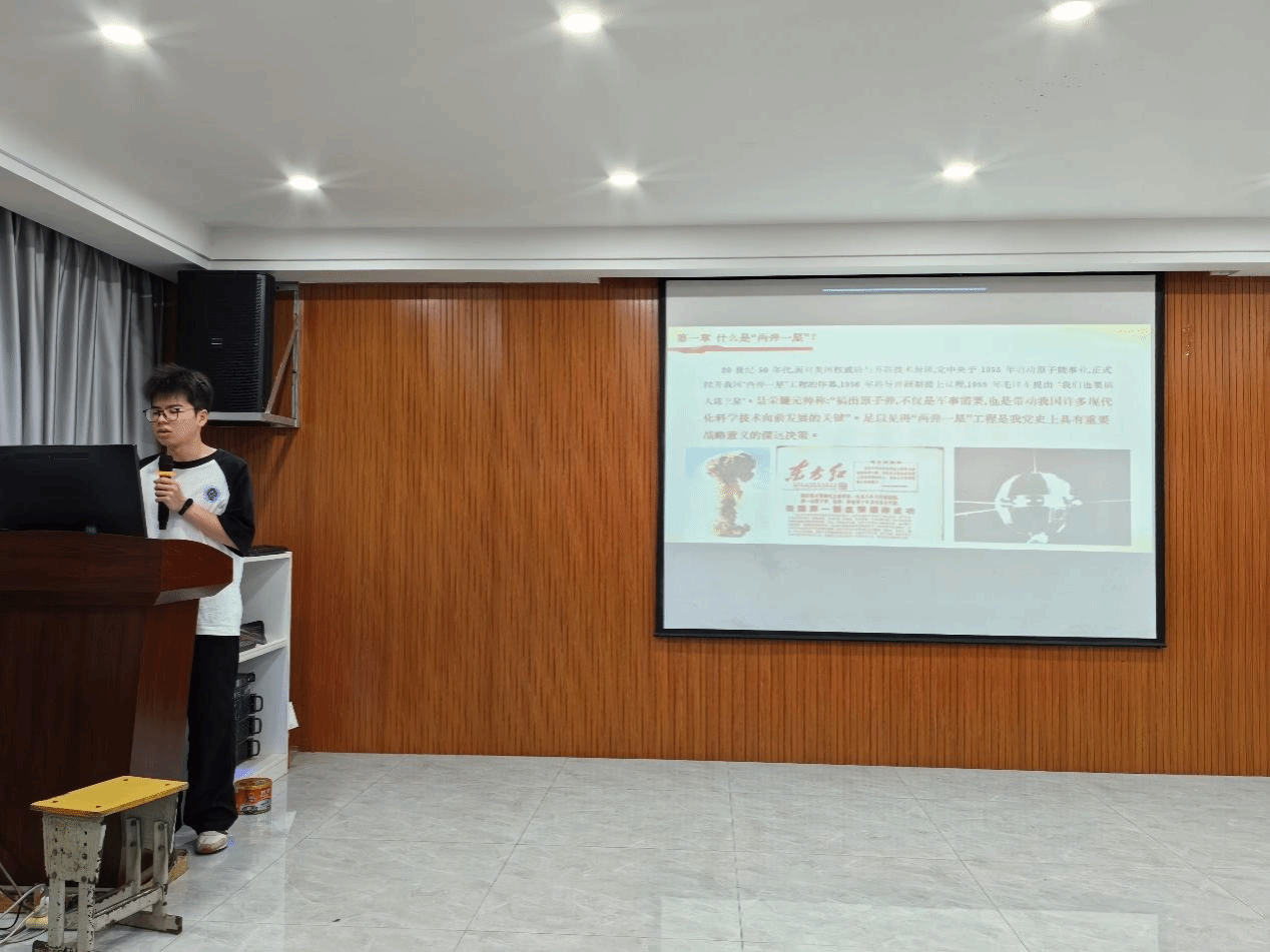 图1.服务队团委书记林彦晨讲授两弹一星专题