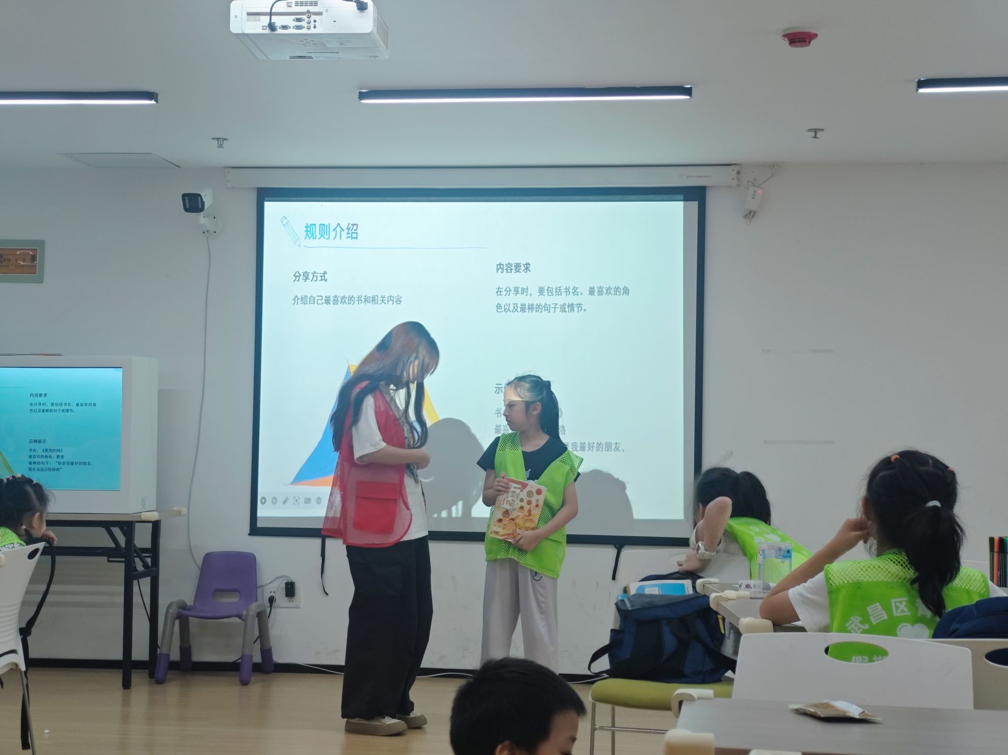 活动的核心环节——“我的书架小分享”将现场气氛推向高潮。许多小朋友自信地带着自己喜爱的书籍走上台进行推荐分享。在志愿者的适时引导下,孩子们不仅介绍了书名和作者,还能进一步阐述书中令自己印象深刻的情节或人物。“我最喜欢《呼兰河传》里萧红的外祖父,我觉得他是那个封建社会里少有的清醒又慈爱的人。”一位小女孩说道。从文学名著到科普漫画,小朋友们不仅在介绍好书的过程中锻炼了语言组织和公开表达能力,更在交流碰撞中自然体会到了书籍所传递的积极价值观。