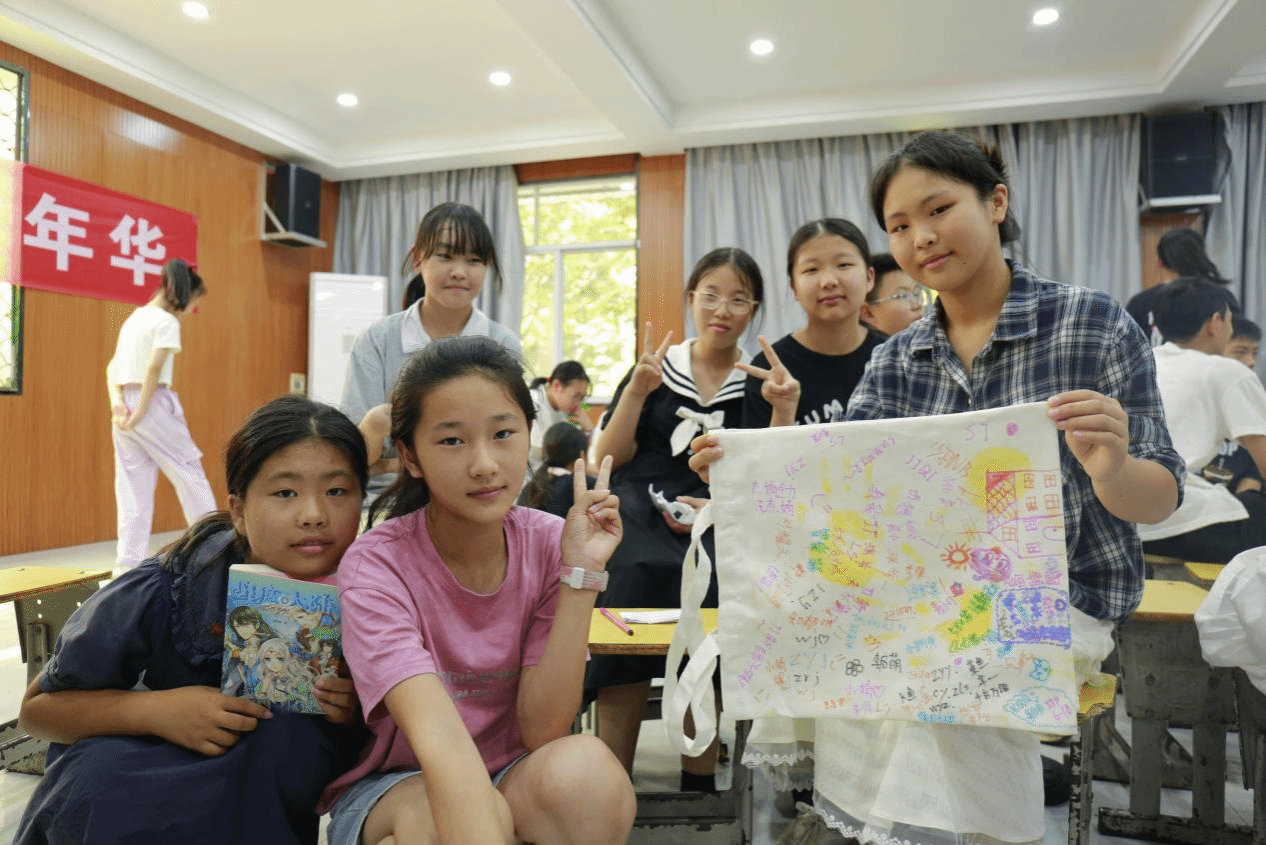 服务队打造“绿芽计划·生命课堂”“美育思政课”“手工剪纸”等系列特色课程。在生物实践课上,学生亲手培育花生种子,观察种皮破裂、根须生长的生命历程,带领学生走上一场跨越生命观察与科学探究的奇妙旅程;美育思政课以“两弹一星”精神为主题,结合帆布袋绘画、艺术薄膜创作,让家国情怀可视化;手工剪纸课上,队员从剪刀用法、纹样设计教起,带领学生剪出“乡村振兴”“民族团结”等主题作品,在非遗体验中增强文化自信。