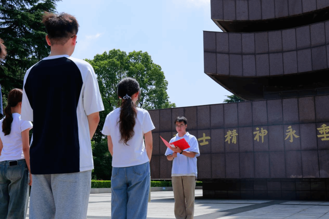 依托荆州红色资源,服务队赴沙市市革命烈士陵园开展主题团日活动。队员们在“烈士精神永垂不朽”纪念塔前鞠躬致敬,重温入团誓词,聆听赵一曼、杨靖宇等先烈事迹。通过参观陵园、分享感悟,队员们深刻体悟革命精神,坚定理想信念,将红色传统内化为服务基层的行动自觉,为团队凝聚注入精神动力。