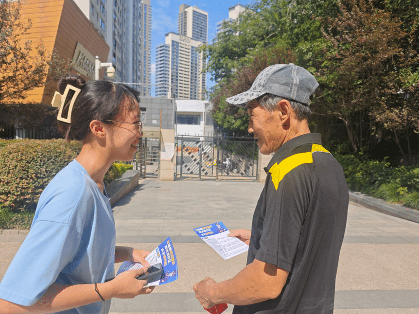 实践团成员分工明确、兵分两路开展行动。一组在社区广场设立防诈宣传点,为过往居民分发防诈手册,讲解各类诈骗的特点与防范手段。为提高社区居民学法用法的积极性,团队还设计了内容紧扣日常诈骗场景的防诈知识问答环节,并分发活动奖品。居民踊跃参与,现场气氛热烈,通过互动交流,大家加深了对防诈知识的理解与记忆,进一步提升了防骗能力。