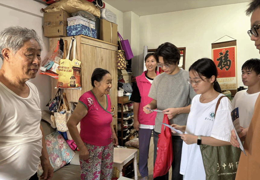 华大青年讯(通讯员 何祎丰)7月28日,华中师范大学法学院“法护成长”实践团(以下简称“实践团”)刚刚结束暑期爱心托管班,便再次走进融侨华府社区,开展“夏送清凉+防诈宣传”双线行动。本次活动旨在通过设立社区防诈宣传点、开展入户精准宣讲等多元形式,为社区空巢老人和困难儿童送去夏日消暑物资与真切关怀的同时,将实用的法律知识送到群众身边,从而筑牢社区安全防线,以实际行动践行“法治为民”的宗旨。