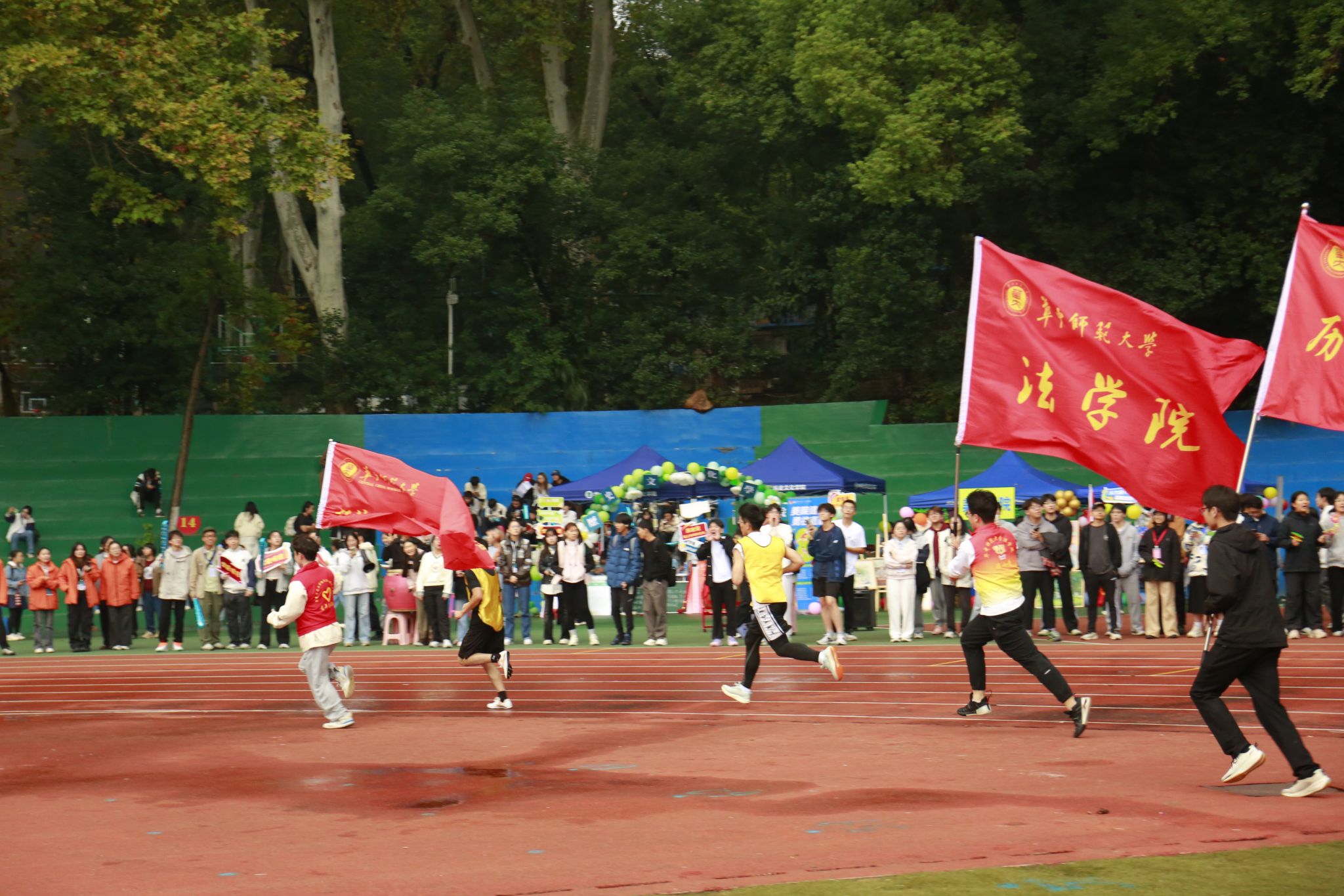 在陪跑过程中,法学院的志愿者们不仅展现了出色的体能和毅力,更彰显了法学专业学生的独特风采。他们与运动员并肩同行,共同承受着体力的消耗与精神的压力。每一次旗帜的交接,都象征着责任的传递与延续,每一位志愿者都严阵以待、坚守岗位,用行动诠释着“奉献、友爱、互助、进步”的志愿精神。他们用实际行动诠释着法律的公平与正义精神,在赛场上传递着平等、互助的价值观,让运动员们在竞争中感受到人性的关怀与温暖。