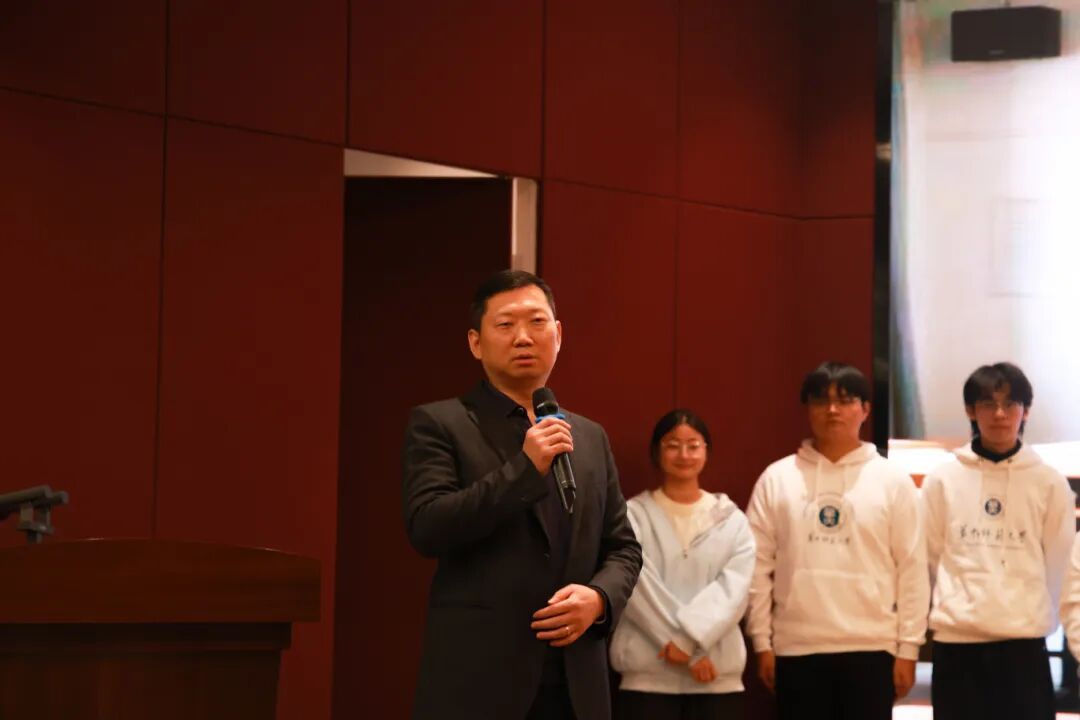 万枞作总结讲话,他高度肯定了同学们的精彩演绎和各位老师们辛苦付出,指出该剧以深刻的历史还原,为现场的党员和入党积极分子上了一堂精彩的思政课。他强调在抗战胜利80周年的特殊历史节点,面对当前国际形势下没有硝烟的挑战,新时代青年更应铭记历史、奋发图强。他特别勉励同学们要珍惜来之不易的和平环境,以革命先辈的精神为滋养,将个人成长融入国家发展大局,在涉外法治建设中、法治中国建设中,中国式现代化进程中展现青年担当,为实现民族复兴贡献青春力量。
